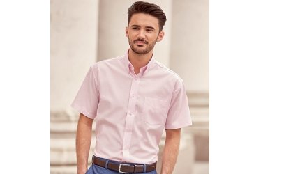 70% katoen, 30% polyester White 130g/mē Color 135 g/mē * kraag met knopen (button down) * 2 rugplooien * Linker borstzak met V-stikking * Afgerond onderaan Kleuren: Black (36) - White (30) - Oxford Blue (OD) - Classic Pink (Y1) - Silver (SI) - Aztec Blue (ZT) - Bright Royal (BH) -